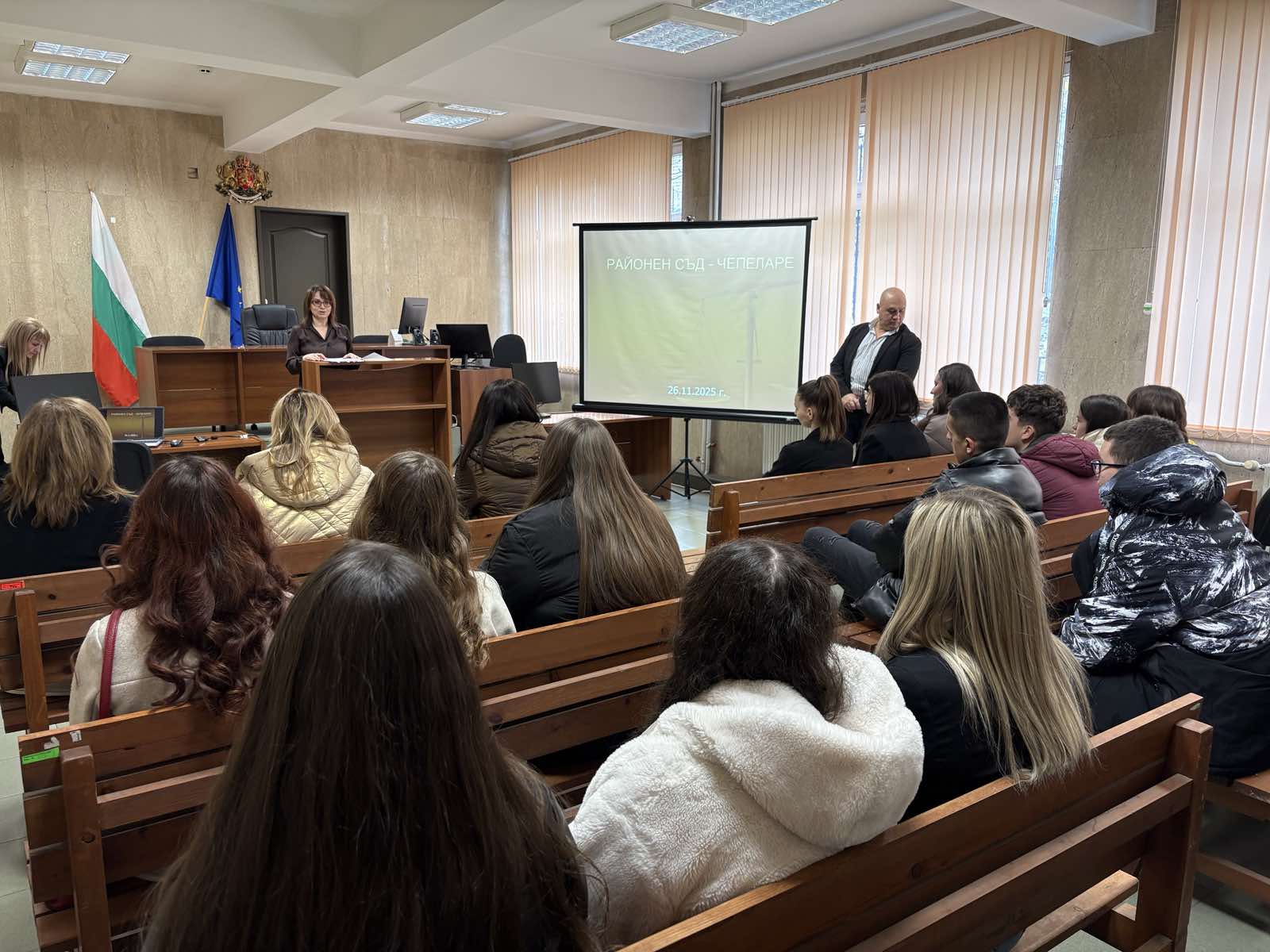 Днес, 26.11 2025 г., в Районен съд – Чепеларе, се проведе „Ден на отворените врати“. Инициативата е част от информационната кампания „Открито за съдебната власт“ и се провежда ежегодно. Целта е да се предостави възможност на младите хора да се запознаят отблизо с организацията и дейността на съдебната система, както и да насърчи гражданското образование и правната култура сред подрастващите.